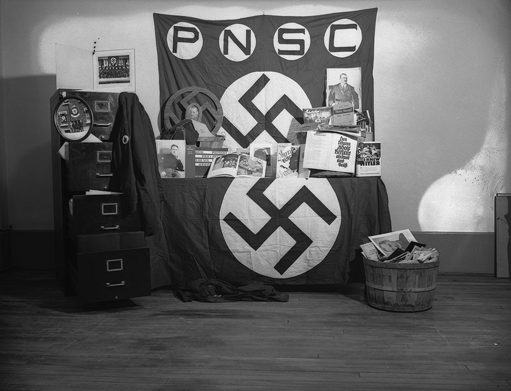 The Cabinet, prompted by the Minister of Justice Ernest Lapointe, decided to outlaw both the Communist Party and Arcand’s National Unity Party, ordaining the arrest of their leaders. When the list of communist front organizations that were also banned was read out in parliament, thunderous applause greeted each name.[30] Saluste Lavery, a prominent nationalist lawyer, sought the release of Arcand and his associates who he described as “the greatest of great Canadians” facing unjust charges “instigated by Jews who are responsible for the war.”[31]